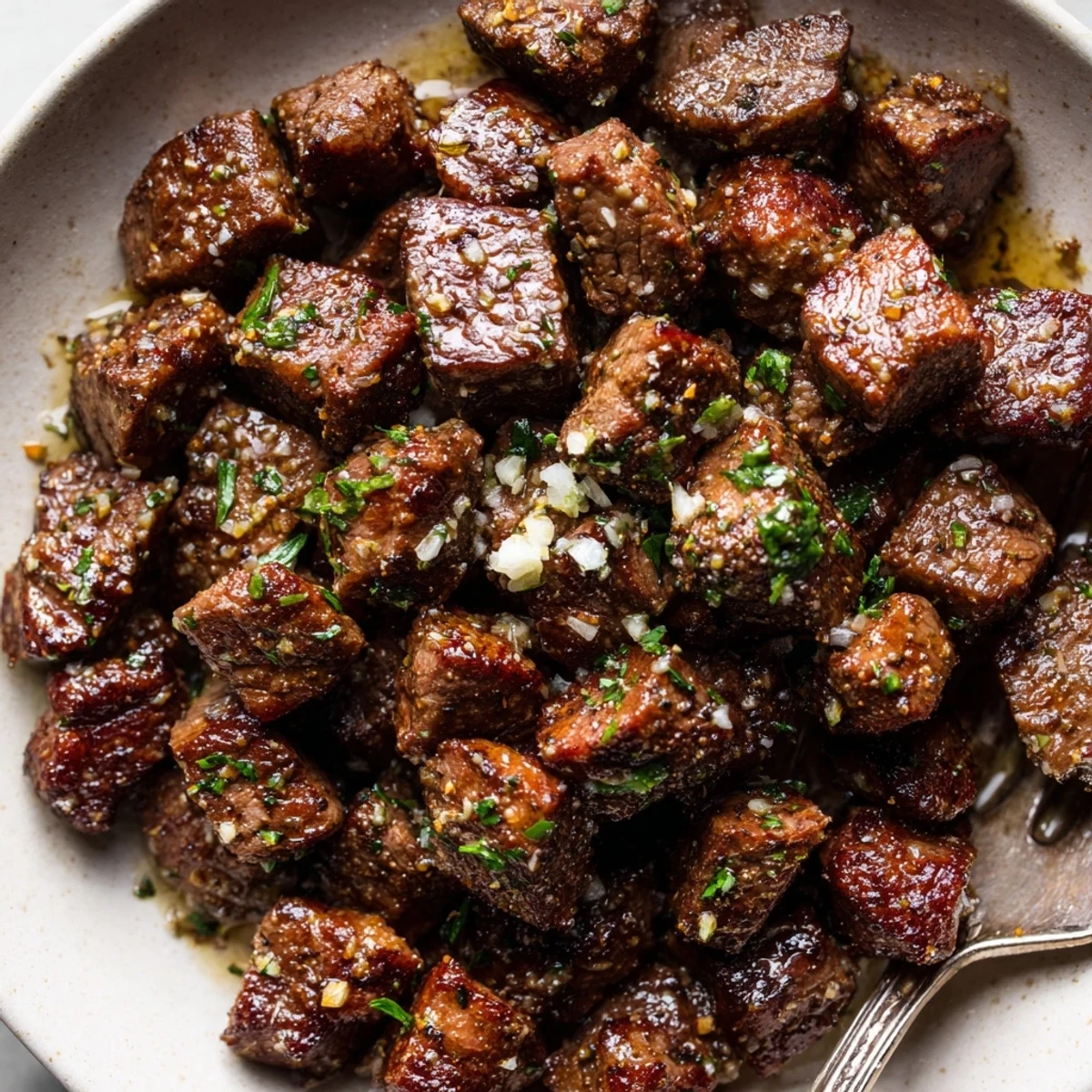 Quickly sear seasoned sirloin cubes in a hot skillet to build a brown crust, then finish by melting butter with minced garlic and fresh herbs. Toss the browned bites in the garlic butter until glossy and warmed through. Work in batches to avoid crowding for the best crust. Serve immediately with flaky sea salt and extra parsley; great over mashed potatoes or crusty bread to soak up the sauce.